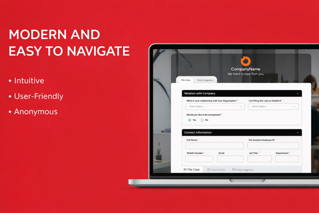 Even in strong organizations, many people hesitate because they are unsure what counts as reportable. iVoiceUp reduces that uncertainty by making reporting simple and structured – with clear categories (ethics, compliance, HR, workplace conduct, and more) and guided inputs that help stakeholders provide the right context from the start.